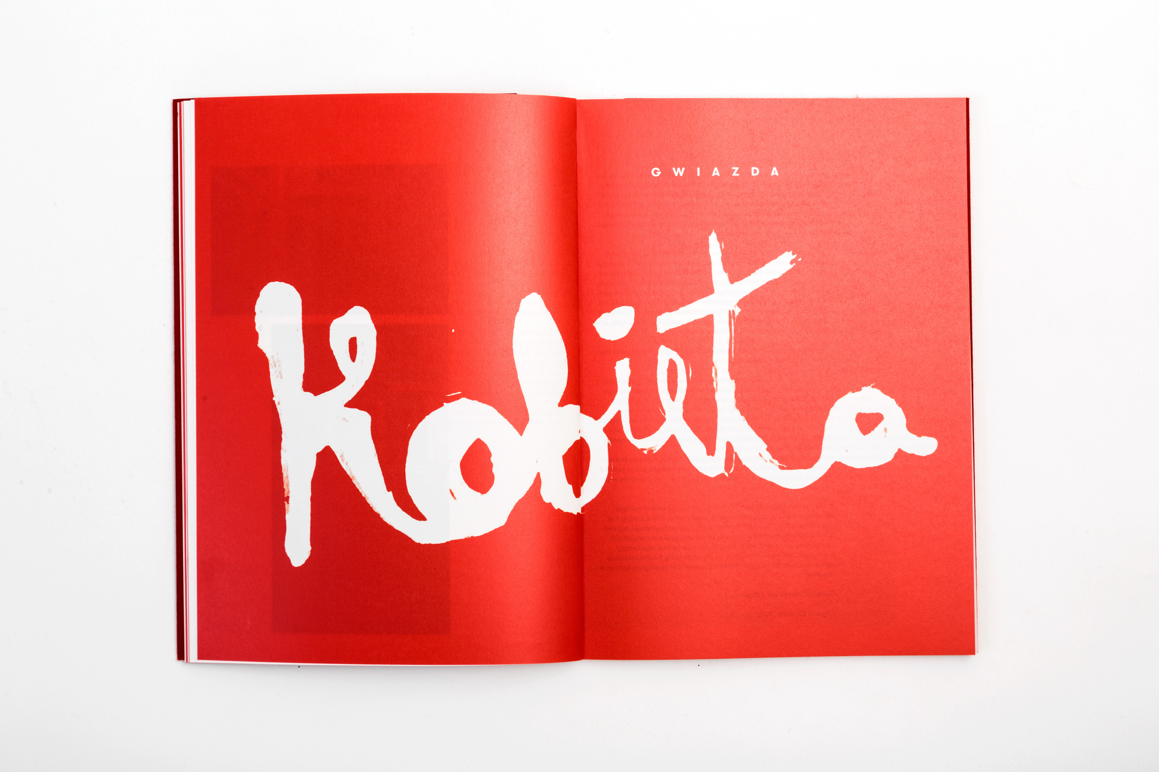 Exhibition catalogue for the exhibition "Woman is like Sosnowiec" (Sosnowiec is the city in Poland). Hand lettering of the exhibition title and multiple interpretations of the word "kobieta" (eng. Woman) by Michał Minor. Photos by Barbara Kubska.