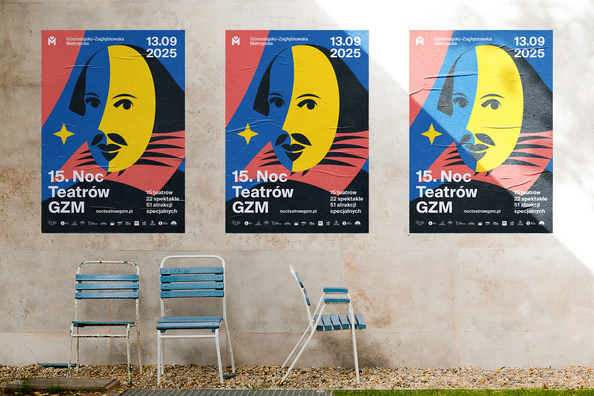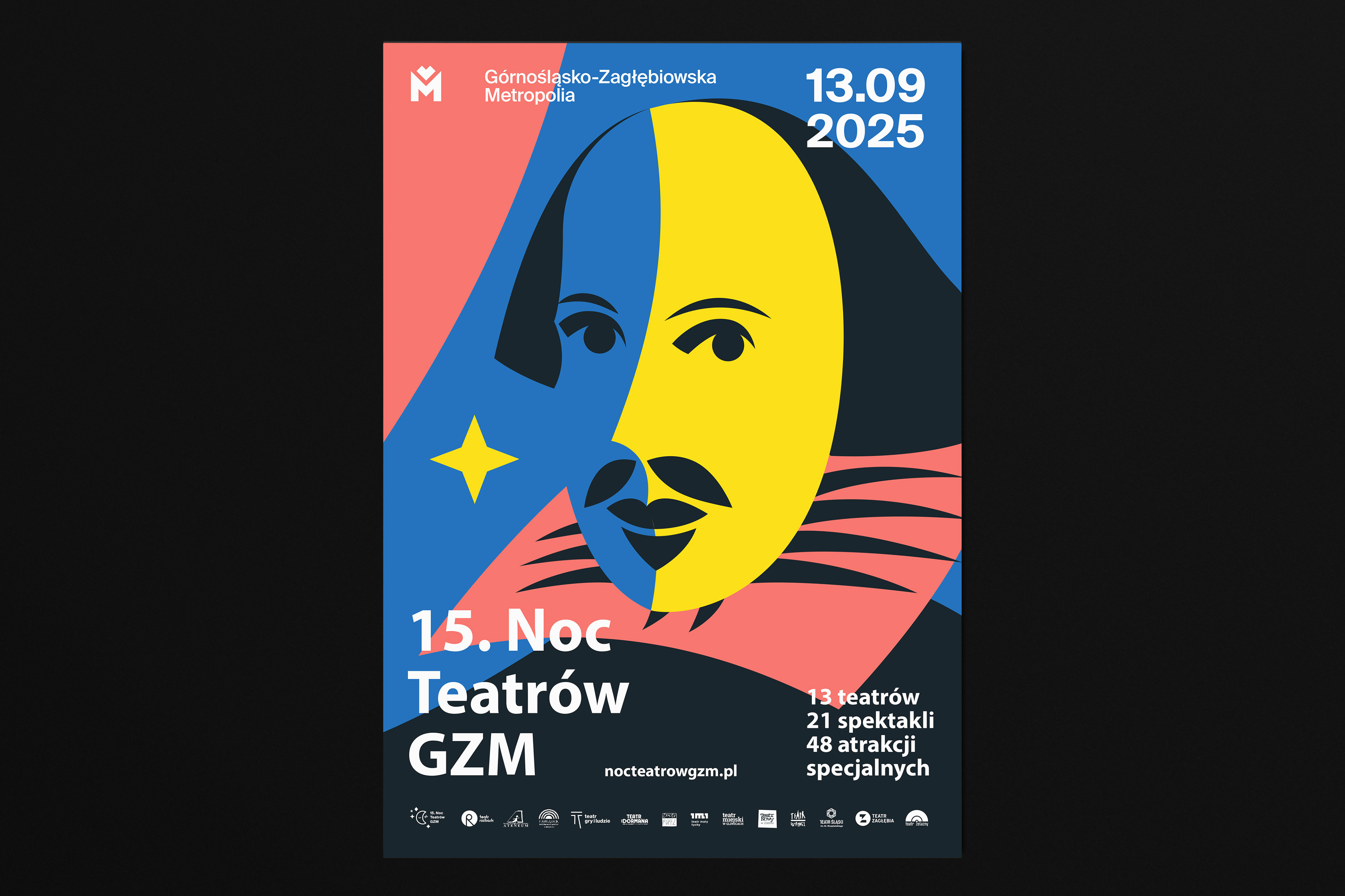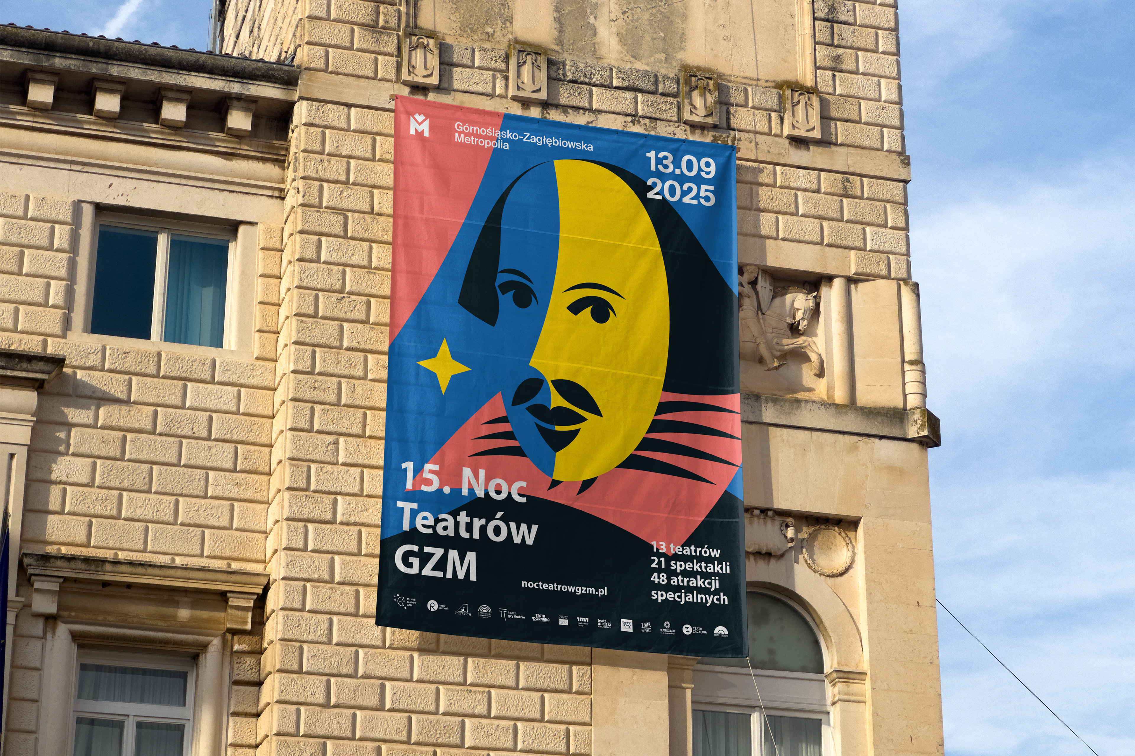 An outdoor campaign promoting 13 theatres, 21 performances, and 48 special attractions across the GZM Metropolis.