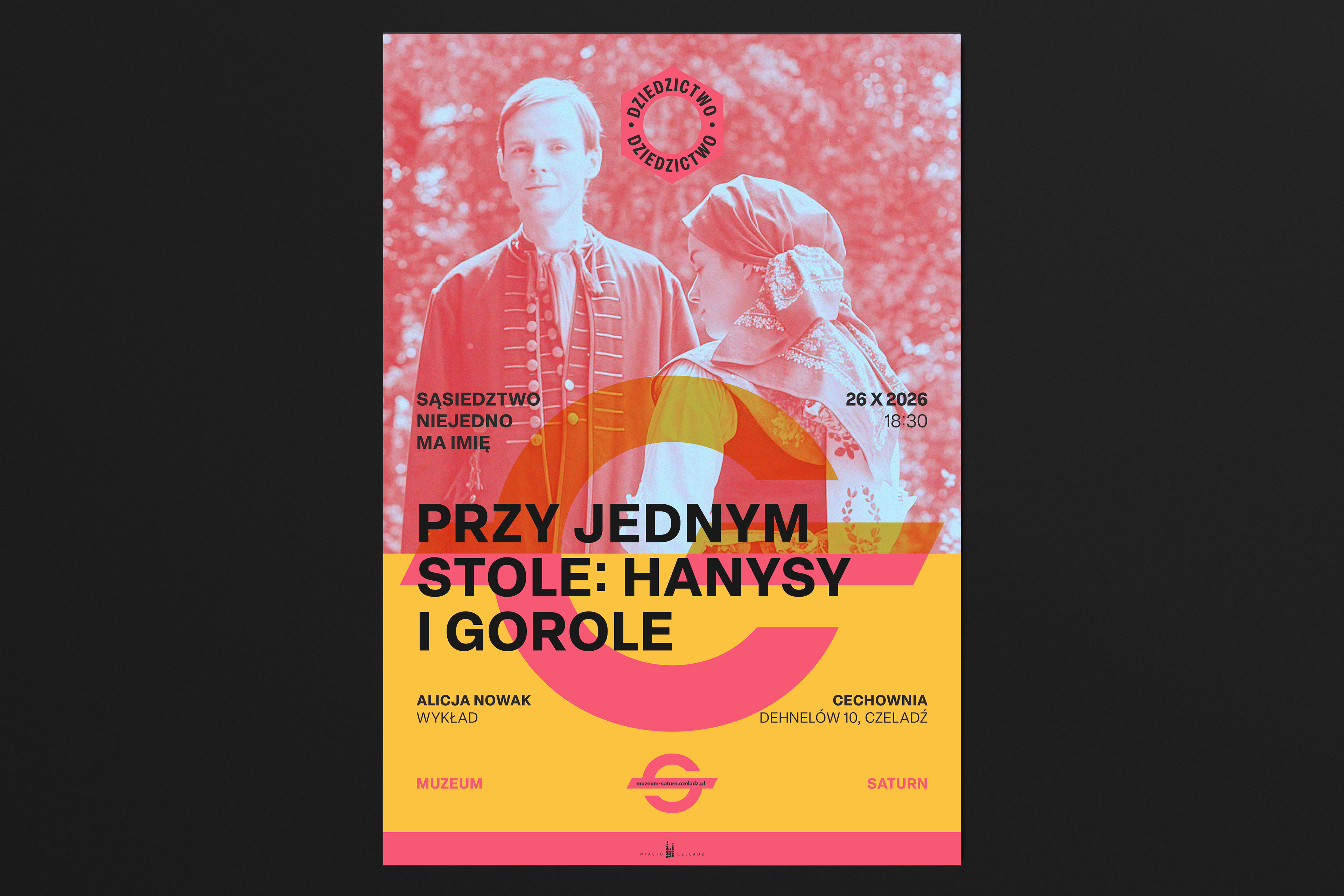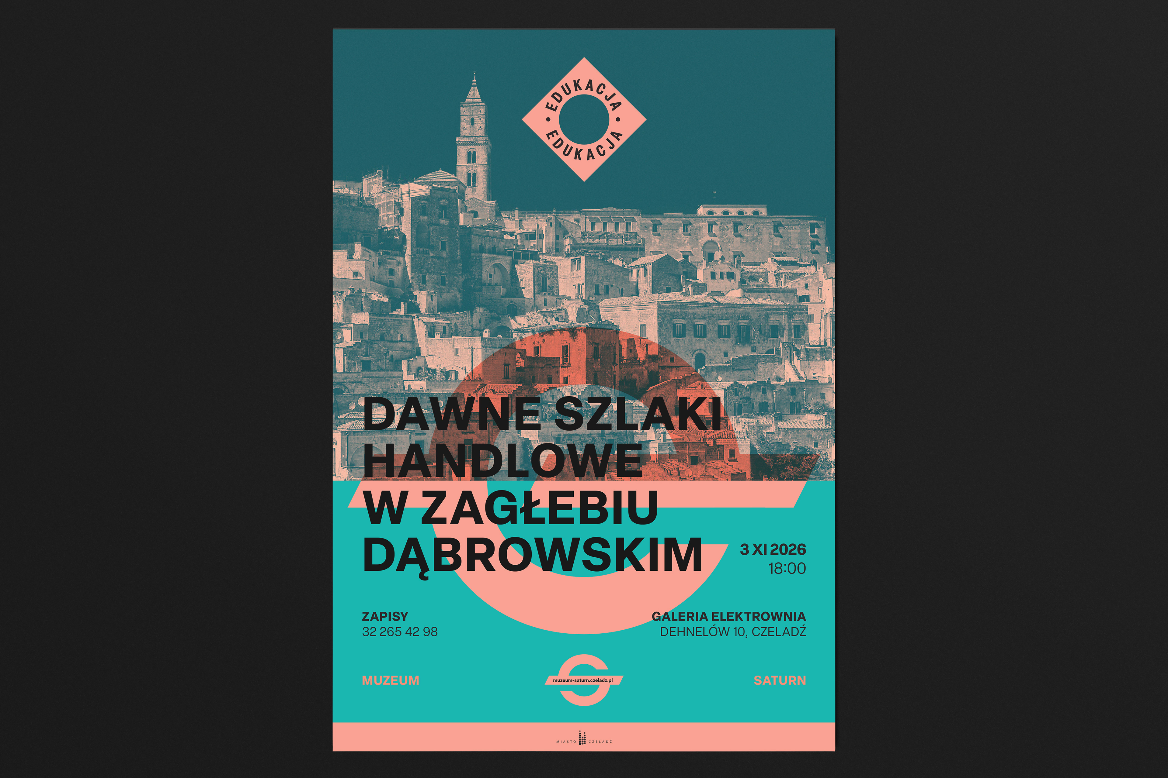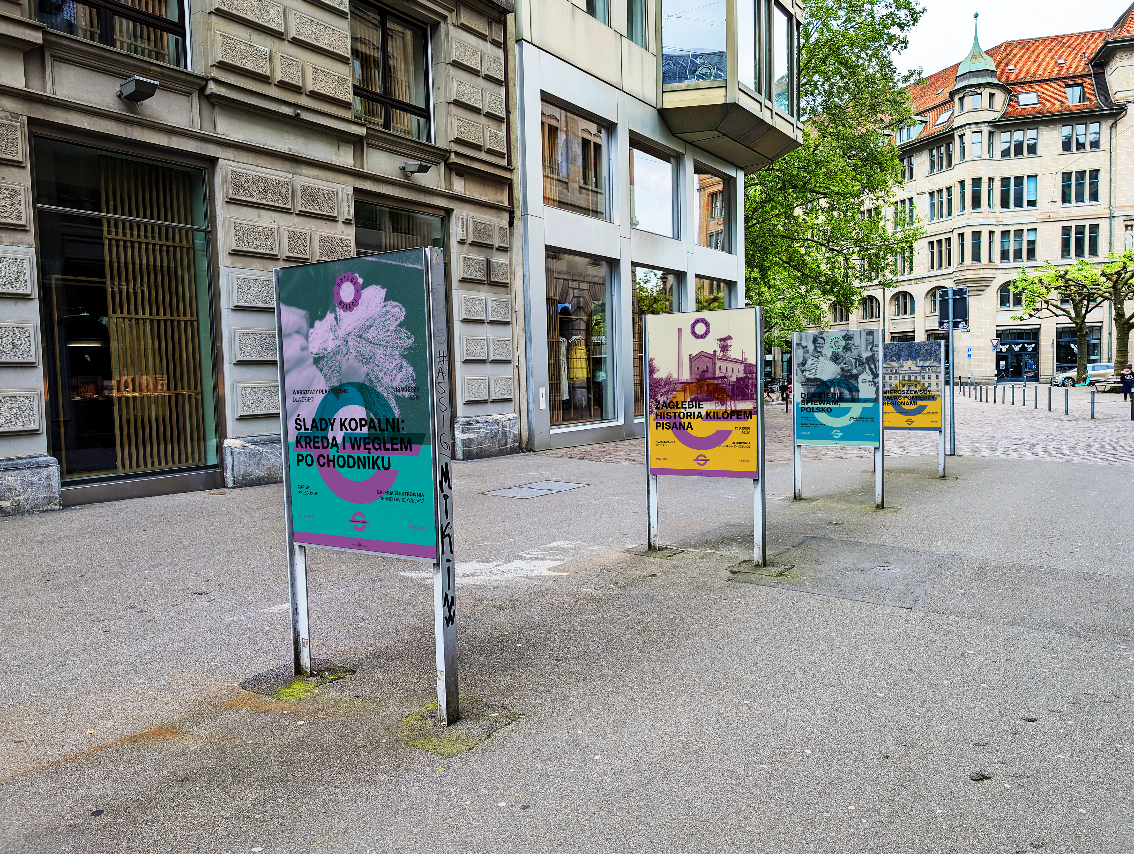 Design for the Saturn Museum in Czeladź, whose name is derived from the tradition of the former Saturn Mining and Industrial Society. The logo is inspired by the society’s historical emblem and serves as the foundation for the museum’s visual identity. The industrial character refers to the site’s heritage, while the modern form reflects the contemporary spirit of the institution. Bold colors are designed to stand out against the post-industrial surroundings.