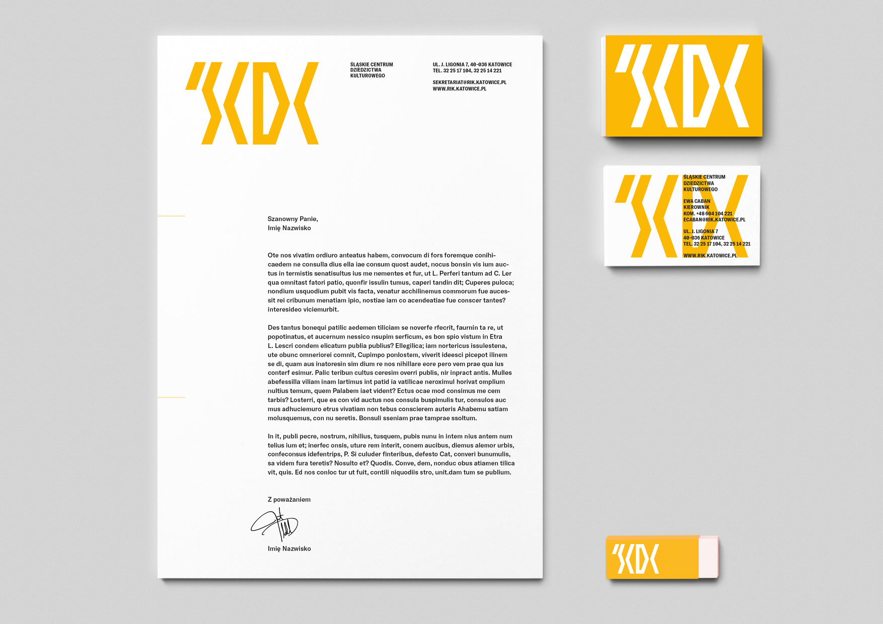 Regional Cultural Institute Corporate Identity. Logo system design inspired by the industrial heritage of Silesia. Contest work.