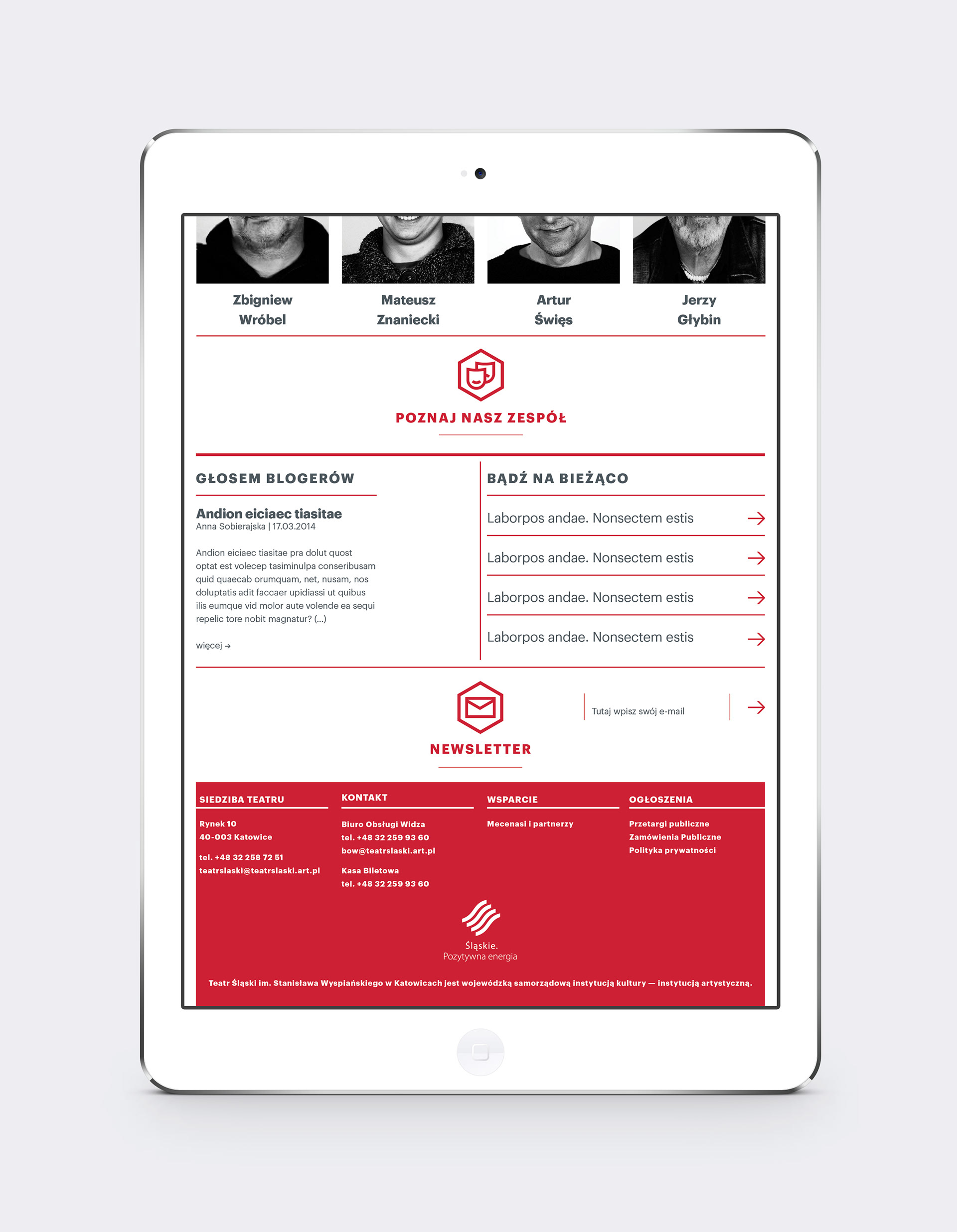 Nowe logo Teatru Śląskiego przywodzić ma na myśl trzy jego odrębne sceny, których różnorodny repertuar oddaje artystyczne spektrum instytucji. Zaproponowany znak graficzny ma wiele konotacji: